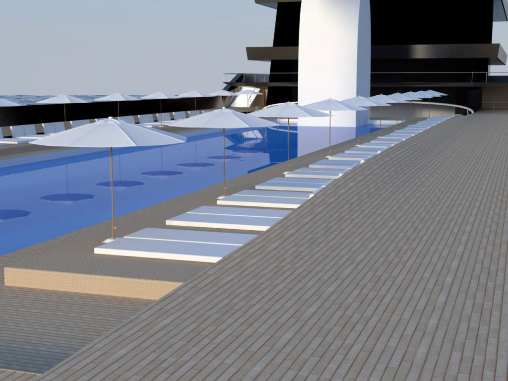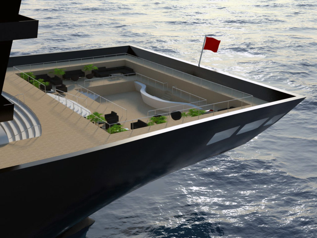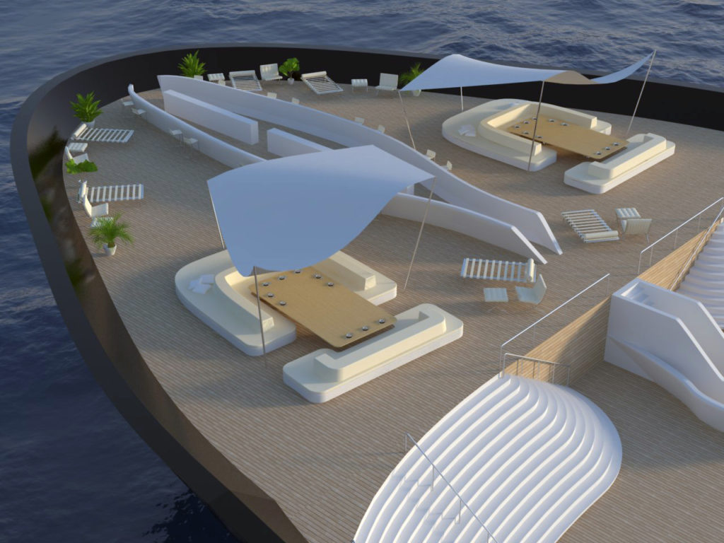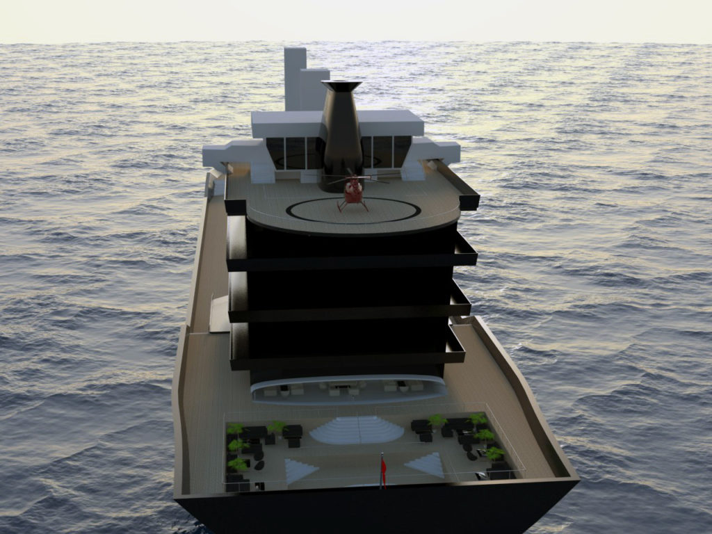 the idea of a moving hotel with a club, lounge and casino inside that can travel to every island and follow the sun over the year. In contrast to other ordinary party-ships this concept includes staying at one place for each season and to invite the island to come on board.